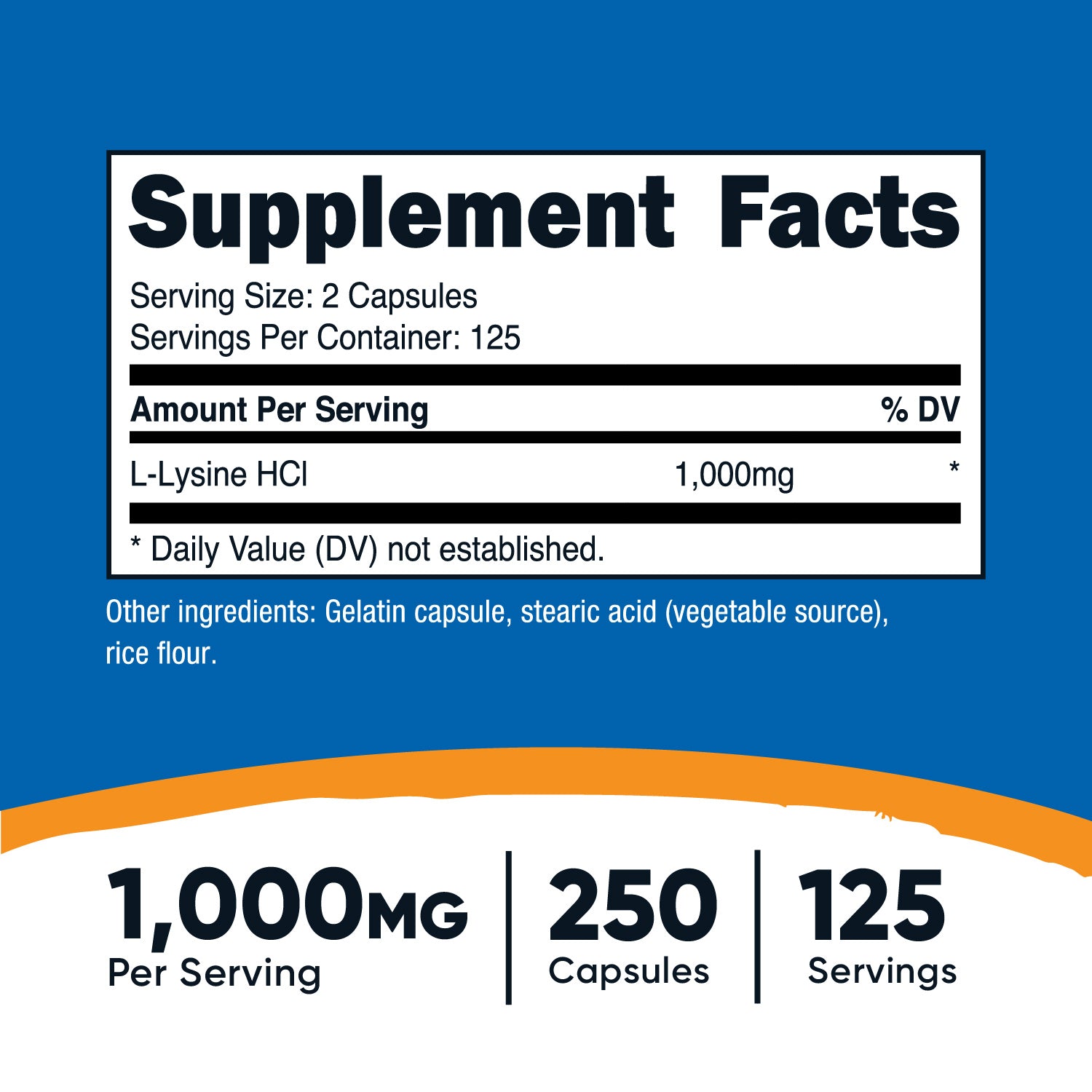 - 1000mg of Premium L-Lysine Per Serving, 500mg Per Capsule